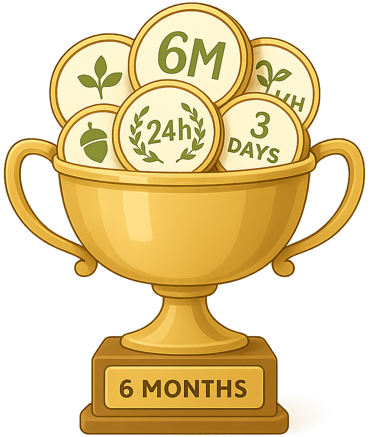 A full, tear-off page for every new day. The date, an affirmation pulled from real neuroscience on the early days of sobriety, and your current stretch — all on one piece of paper you get to remove with your thumb.